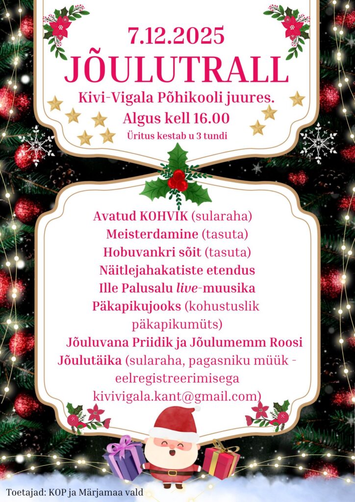November 30, 2025 HomeUncategorizedJõulutrall Jõulutrall By Liina Kikas Uncategorized 0 Comments Related Posts Jaanituli koos küladepäevaga Jõulumaagia Vana-Vigalas Kogemusreisid laiendavad silmaringi About Author liina Add a Comment Cancel replyYour email address will not be published. Required fields are marked *Comment:*Name:* Email Address:* Website: Save my name, email, and website in this browser for the next time I comment. Δ